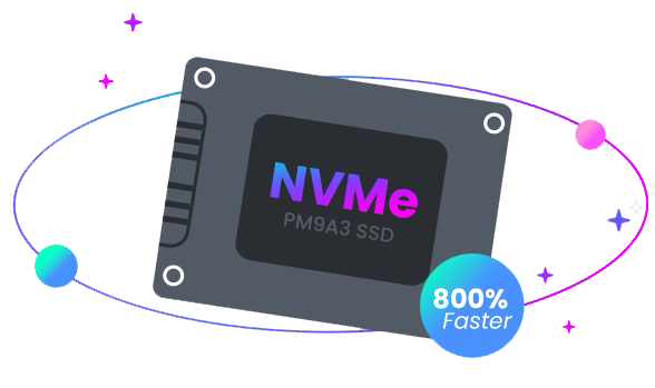 Veri depolamada en son teknolojiyi kullanıyoruz: NVMe (Non-Volatile Memory Express) SSD diskler.