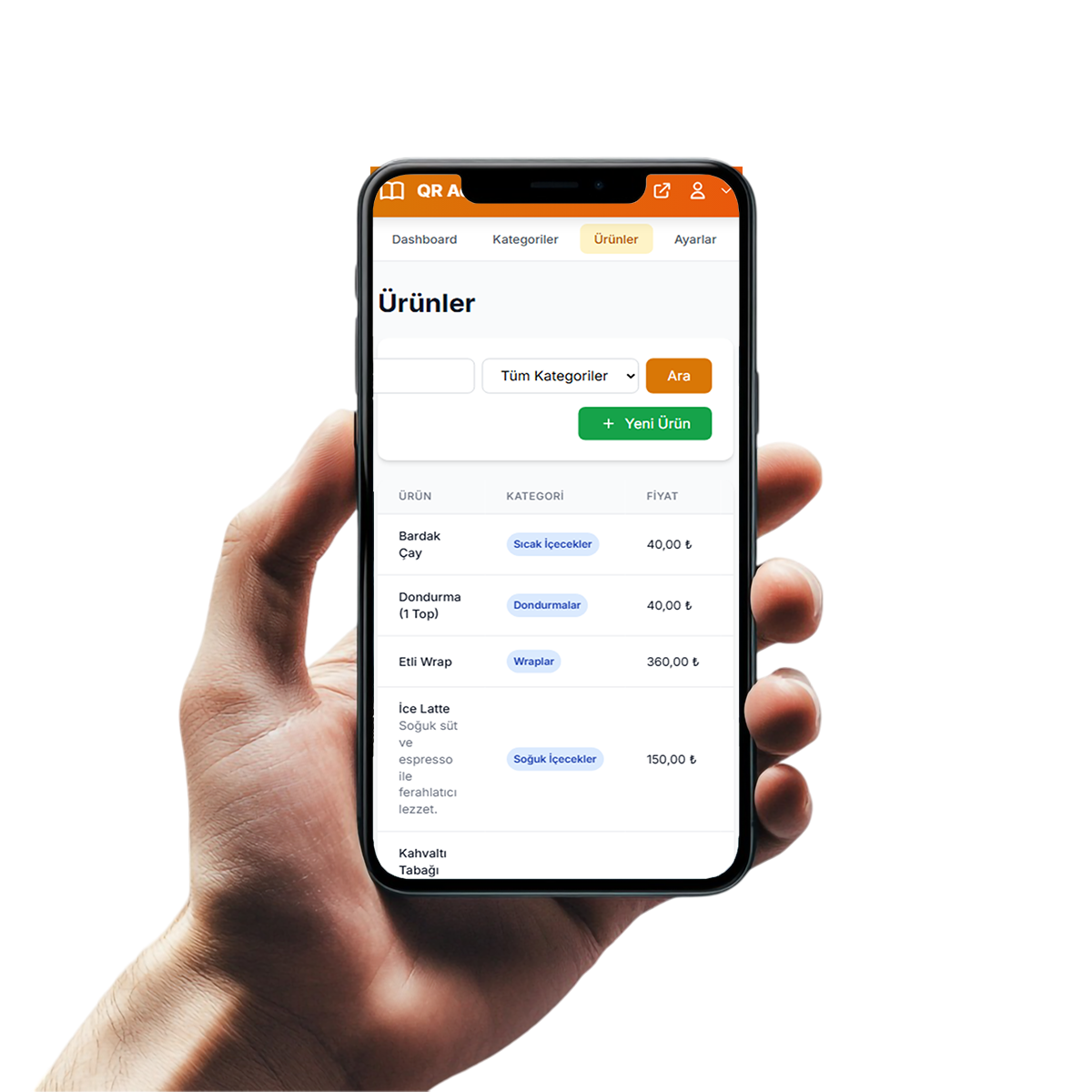 Kağıt menü baskı maliyetlerini ortadan kaldırır, fiyat ve içerik güncellemelerini saniyeler içinde yapmanızı sağlar.